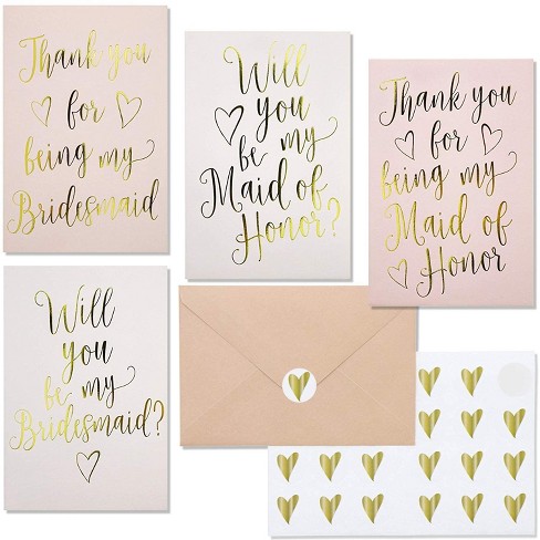 24 Pcs Bridesmaid Invitations Thank You Cards Envelopes Stickers Gold Foil Target
